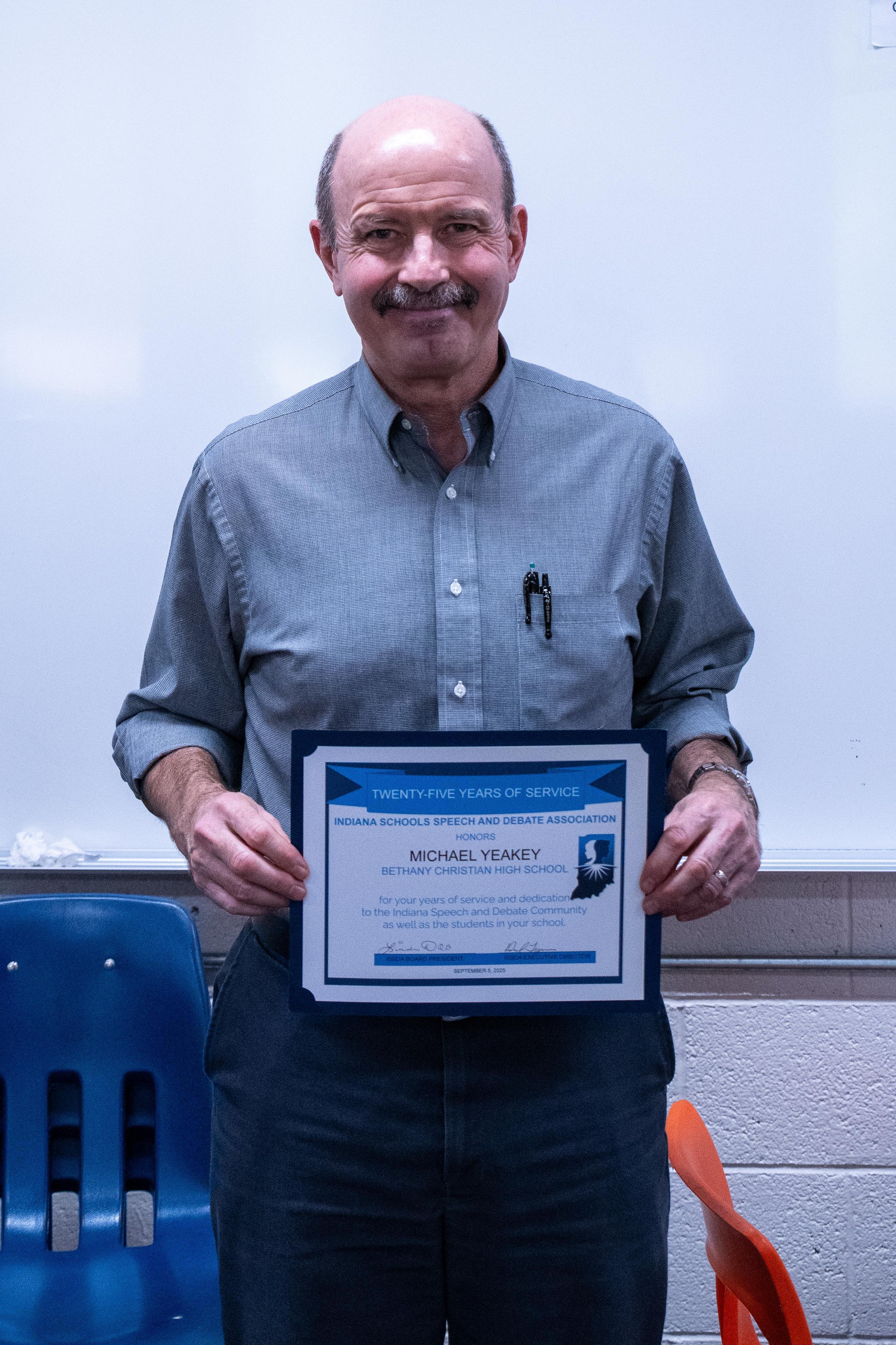 Congratulations to Michael Yeakey! We celebrate Michael Yeakey for 25 years of service and dedication to the Indiana Speech and Debate community—and for the incredible impact he’s had on Bethany students along the way! Published September 30, 2025 Print